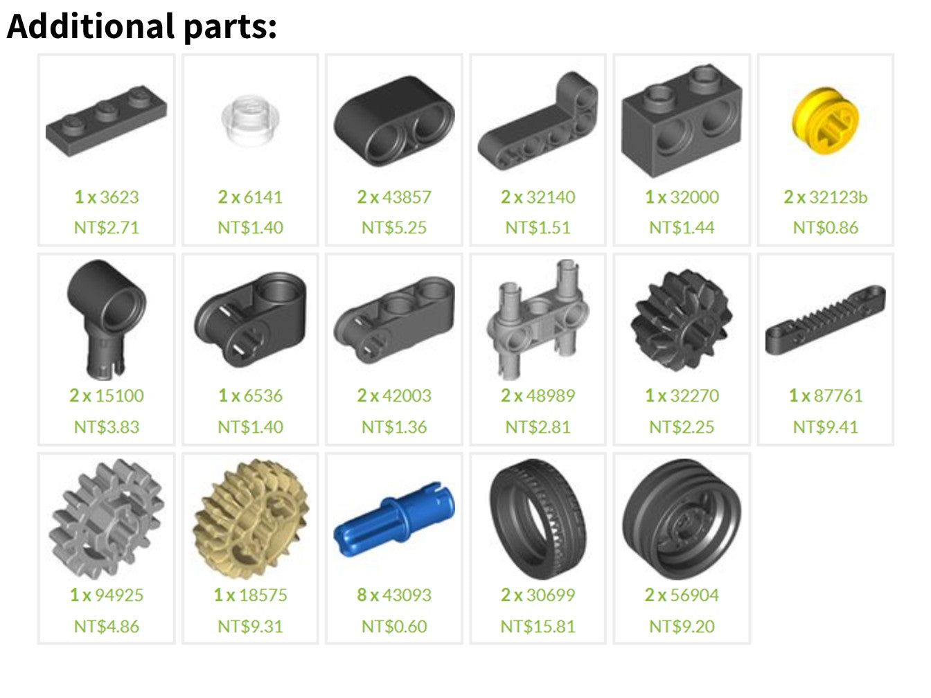 - Additional parts: As shown in the figure