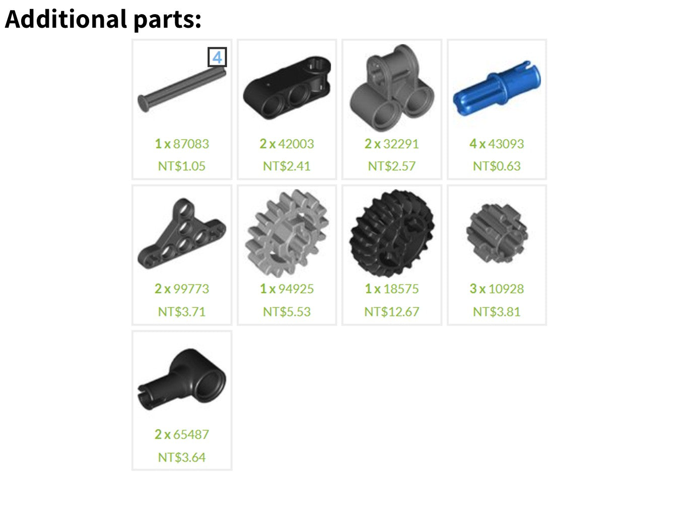 - Additional parts: As shown in the figure